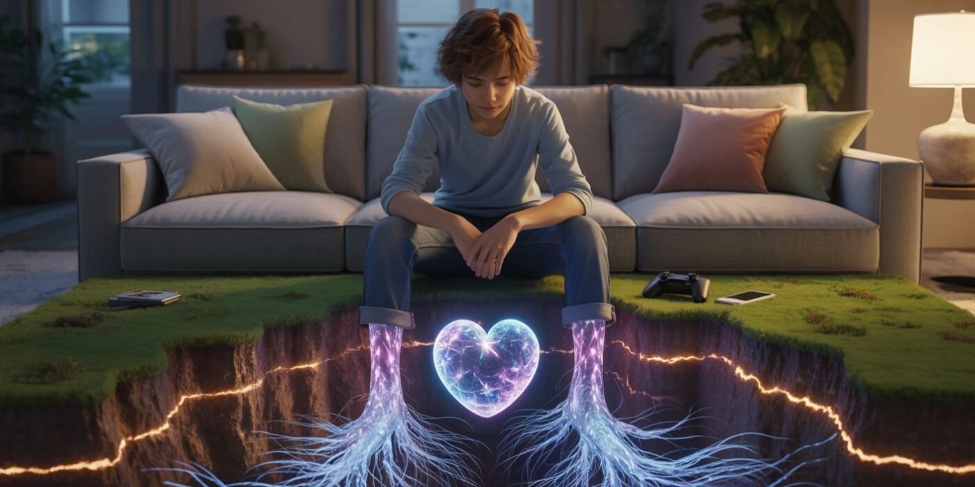 Na Grata EquilibrIA, ele une a sua maestria em contar histórias com a sua profunda jornada no autoconhecimento e na tecnologia da consciência. “Farmando a Energia Telúrica” é o culminar desta alquimia: uma jornada que usa a linguagem dos games, que ele compartilha com o seu filho Mathias, para entregar uma poderosa ferramenta de cura que pode ser vivida sozinho ou compartilhada em família.